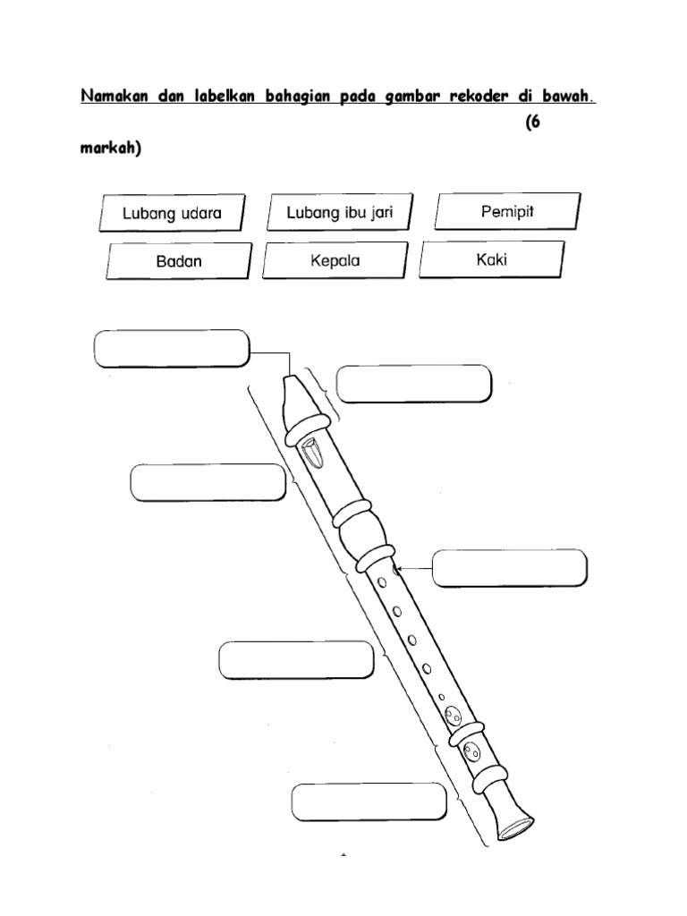 Latihan Rekoder Muzik Tahun 3 Worksheet